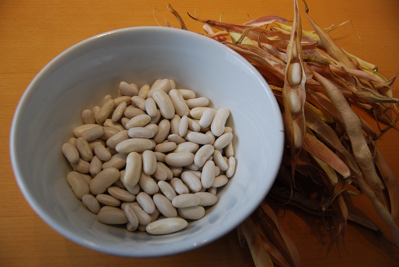 Picked and shelled some delicious cannellini beans today. Deliberately left them to go dry on the plant and, now they’re out of their pods, I’ll let them dry a bit more and then store them in jar for use later in the year.