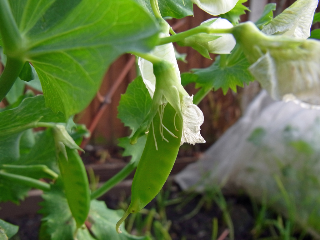 Like last year, approaching the end of 2014 we’ve had a few frosts and some low night temperatures but no snow and no truly icy weather. And with that comparative mildness this single Oregon Sugar Pod mangetout is still flowering and producing pods. It was sowed in April, so has enjoyed a long season.