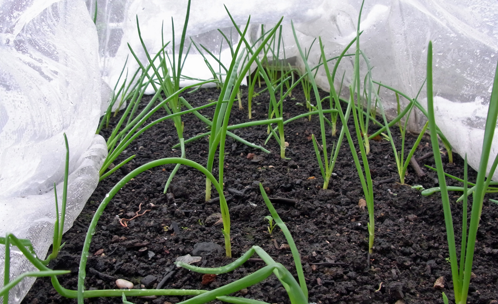 In contrast, the proper overwintering vegetables will scarcely notice this weather. Being winter-hardy varieties, the Japanese onions and Germidour garlic are sitting happily, the onions underneath a mesh tunnel.