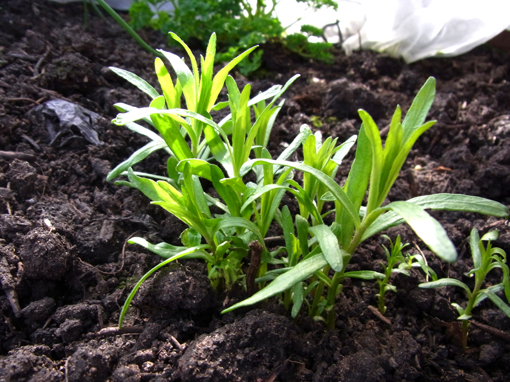 A special treat was to be found in the herb bed today. I thought my tarragon plant had perished in the winter. However, with a fleece cover, the twiggy remains managed to survive and there’s now beautiful lush growth of my favourite herb.