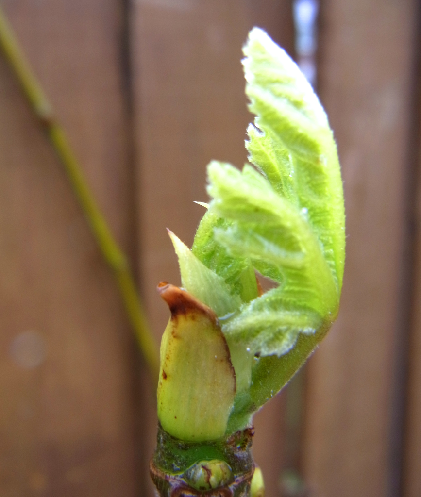Venturing out to the garden it was nice to check on things which are starting to grow. I spotted the first leaves forming on the fig tree.