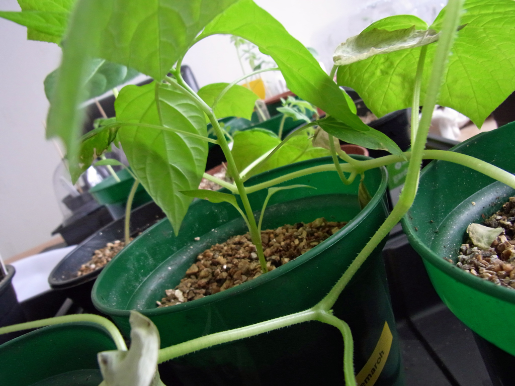 It’s been a rainy grey day today, so I concentrated on transferring seedlings from the propagators into bigger pots. I only have plastic greenhouses and they’re nowhere near as warm or insulated as a real glass greenhouse so all the young plants have to stay indoors for a while yet. As a result, the dining table is now a jungle. I’m sure I heard Tarzan swishing between the branches at one point.