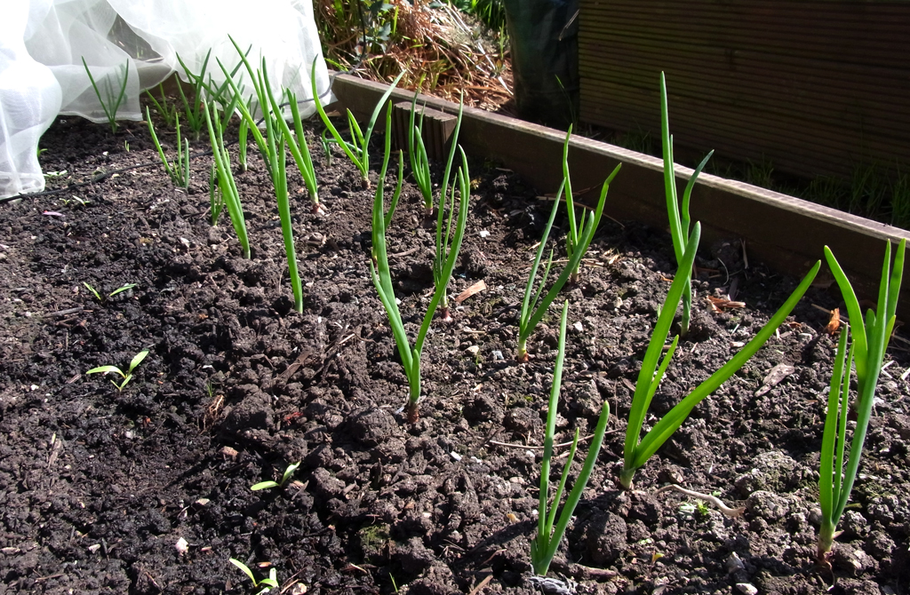Yesterday I was admiring the progress of the Karmen red onions which went in the ground only five weeks ago. Their tall green shoots indicate a strong root system developing underneath.
