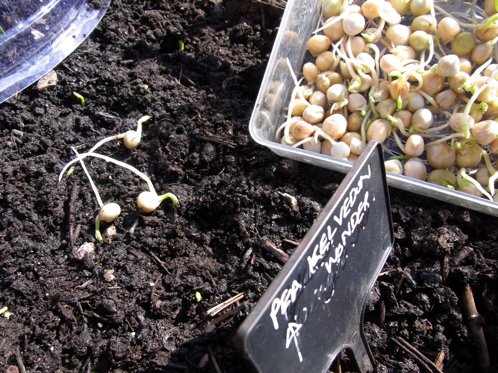 But of course they are effectively just chitting pea seeds and so I just happened to have a load of pre-sprouted mini pea plants, ready for putting in the vacant space.