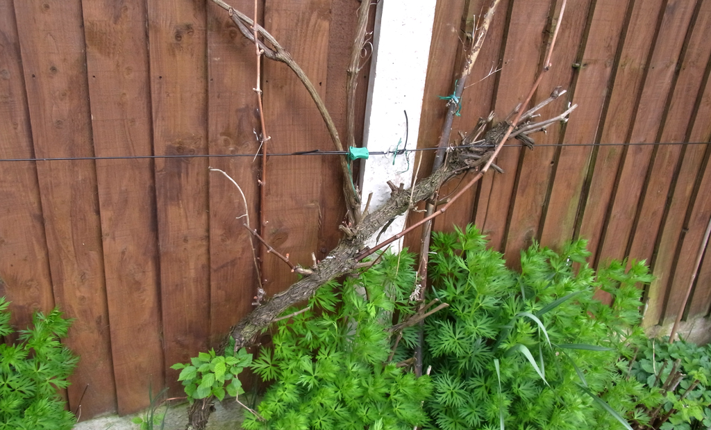 Happily, today I spotted the buds appearing along the branches; all is well. These will absolutely fly now and in no time there’ll be long branches spreading out and lush green leaves, with the grapes to follow soon after.