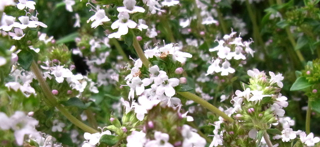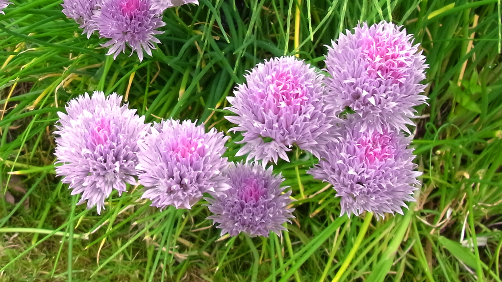 Some herbs are flowering too and the bees seem to particularly like the chive flowers. The frilly pink flowers are also edible to we humans and go well in a salad.