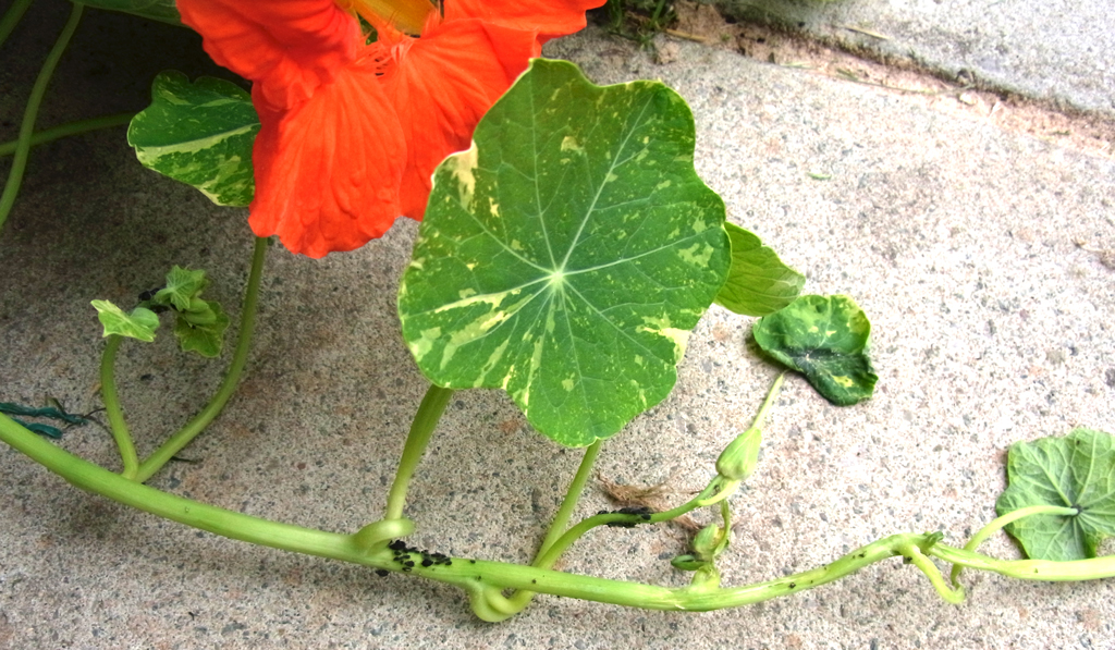 There are some other things in favour of nasturtiums: the flowers are edible – they have an unusual velvety texture when you eat them – and they form seed pods later in the year which are edible, pickle well and are commonly known as poor man’s capers. Being a caper fiend I hope to harvest some, so long as the blackflies don’t overwhelm them. But then again I saw two ladybirds nearby today, so they may well feast on the flies. Once again, nature amazes and yet makes so much sense at the same time.