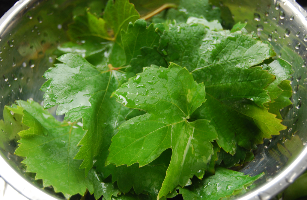 However they’re putting on lots of leafy growth right now so today I picked some of the leaves for making Greek dolmades, those tasty rolled up vine leaves stuffed with minced lamb, tomatoes, rice and so on. The bigger leaves can be tough so it’s important only to pick the softer younger ones to use as wraps.