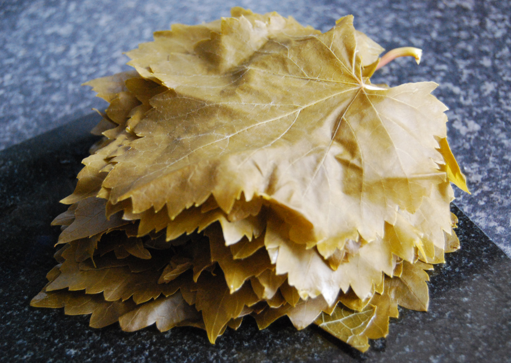 Blanching them they instantly lose their bright green colour and turn a muddy brown. It’s a pity but not important as the taste and texture remain. The stack of leaves is now in the freezer, ready for a mezze feast, with Retsina of course, one day soon.