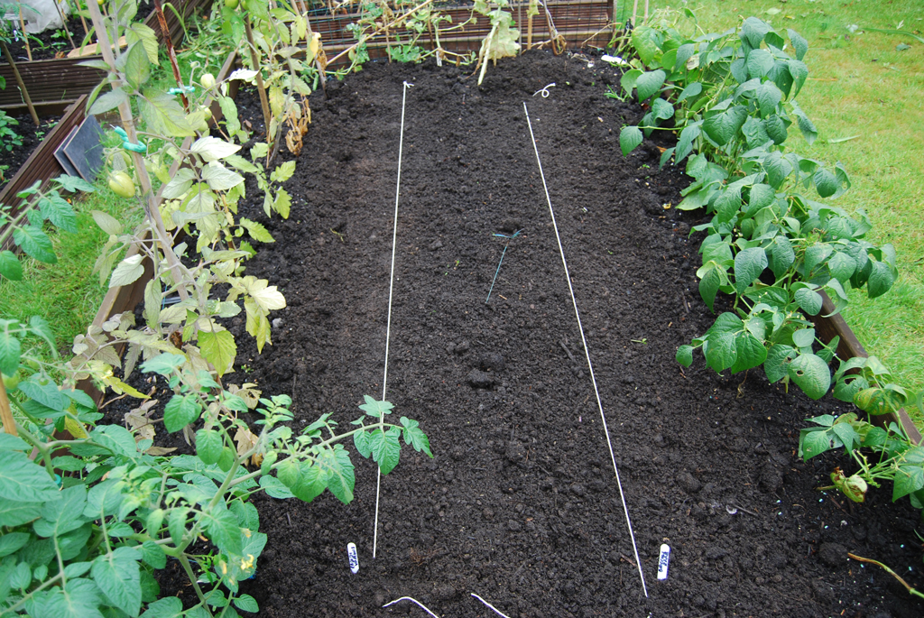 Back to practicalities, having cleared expired plants from various of the raised beds recently it was time to sow fast crops which could profit from the last couple of warmish months.