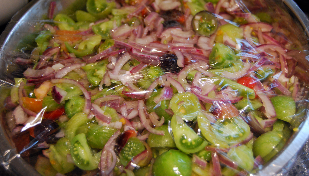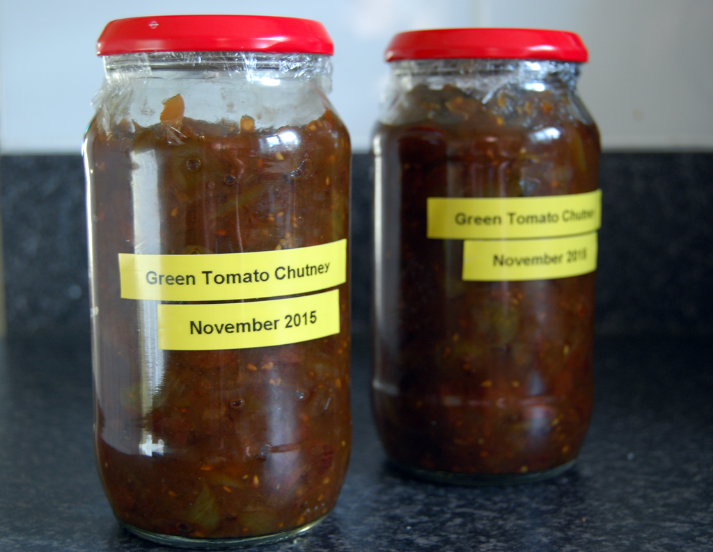 Like many other people, I turned the last tomatoes which steadfastly refused to turn red into a green tomato chutney, mixed with chopped onions, sultanas, sugar, vinegar, salt and pepper. Cooked down it’s a nice thick mix and ready to eat straight away.