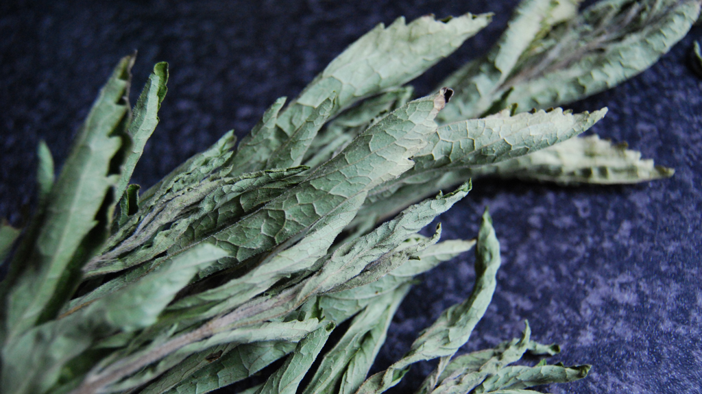 Trying as much as possible to keep out any twiggy bits, I fed the dry leaves into the mini blender. They took a lot of blitzing as there are inevitably stringy fibrous bits, particularly the veins of the leaves. It was necessary to push the mixture through a fine sieve to filter some of the roughage out.