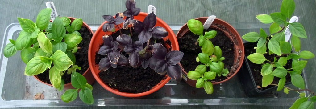 The Crimson King basil is suitably accompanied by his Siam Queen, along with some Italian Clasico and a variety called British Outdoors. All are doing well under cover, which is almost a shame as I’d love to publish a post titled ‘Is my Basil Faulty?’
