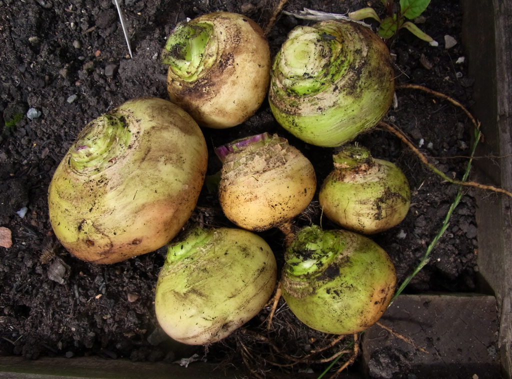 I decided against the much recommended idea of cooking and eating the green leaves, not only because they’d been nibbled quite a bit but also because they were bristly and harsh. The turnips themselves looked fine and apart from some having been burrowed by tiny critters (I ditched those), they were good for eating.