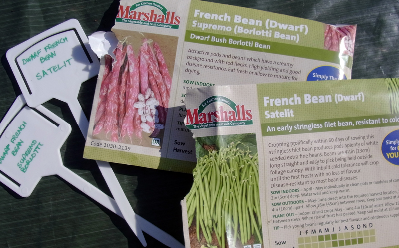 And today I sowed some Satelit dwarf French, which should be similar to the Castandel but have been bred to be very resistant to diseases too. Not that I’ve particularly had such problems with beans in the past; rather it’s usually crawly things eating the leafy young plants. To try and offset that I have two types of nematodes waiting in the fridge: one anti-slug one and another multi-purpose one for protecting fruit and veg from various critters like carrot root fly, ants, sciarid flies and the like. I’ll mix those up and drench the beds next week.