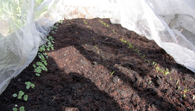 Nearby in one of the big beds, a couple of weeks of warmth and nightly watering have seen whole rows breaking through the surface: swedes, different varieties of carrots and two types of beetroot.