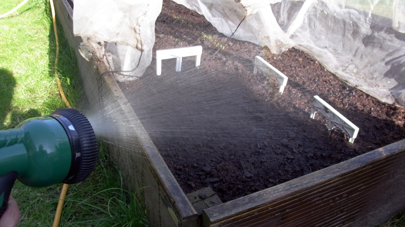 In a reserved corner of the same bed, today was the day for marsh samphire. The seeds, from Victoria Nursey Gardens, looked really good – far better than the rubbish ones I’ve had from other suppliers in the past – but they still look quite strange, like tiny dried twigs, as you sow pieces of dried stem with the seeds in them rather than just separated seeds. I’m sure it makes sense but am not sure why for now.