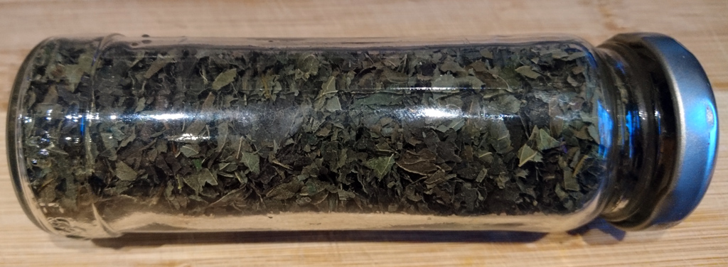 • Lemon Balm, wonderful lemon-scented herb that’s been growing away in the border for ages. I picked a whole load and dried it in the dehydrator. That’s now going into home-made tea bag mixes. I’ve dried blueberries and figs which the lemon balm should blend nicely with.