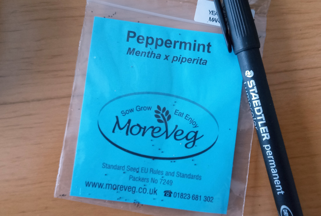 In contrast: mint seeds. Yes those tiny blacks specs. Not the easiest thing to sow in a controlled away.