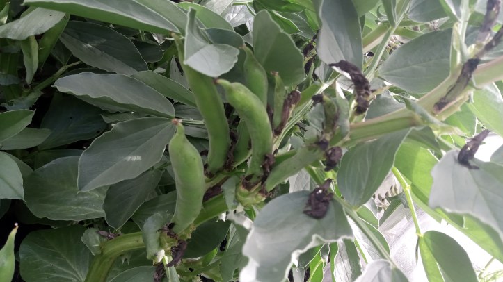 Elsewhere, the broad beans are forming nicely. These are the common dwarf variety ‘The Sutton’, which always seems to perform well. I’ve grown full-size broads in the past but they need an out-of-the-way space or they’re just ‘in the way’ (I grow in my own back garden rather than an allotment and it’s nice to still have a view of the garden out of the downstairs windows rather than a view blocked by whopping great plants and cane structures).