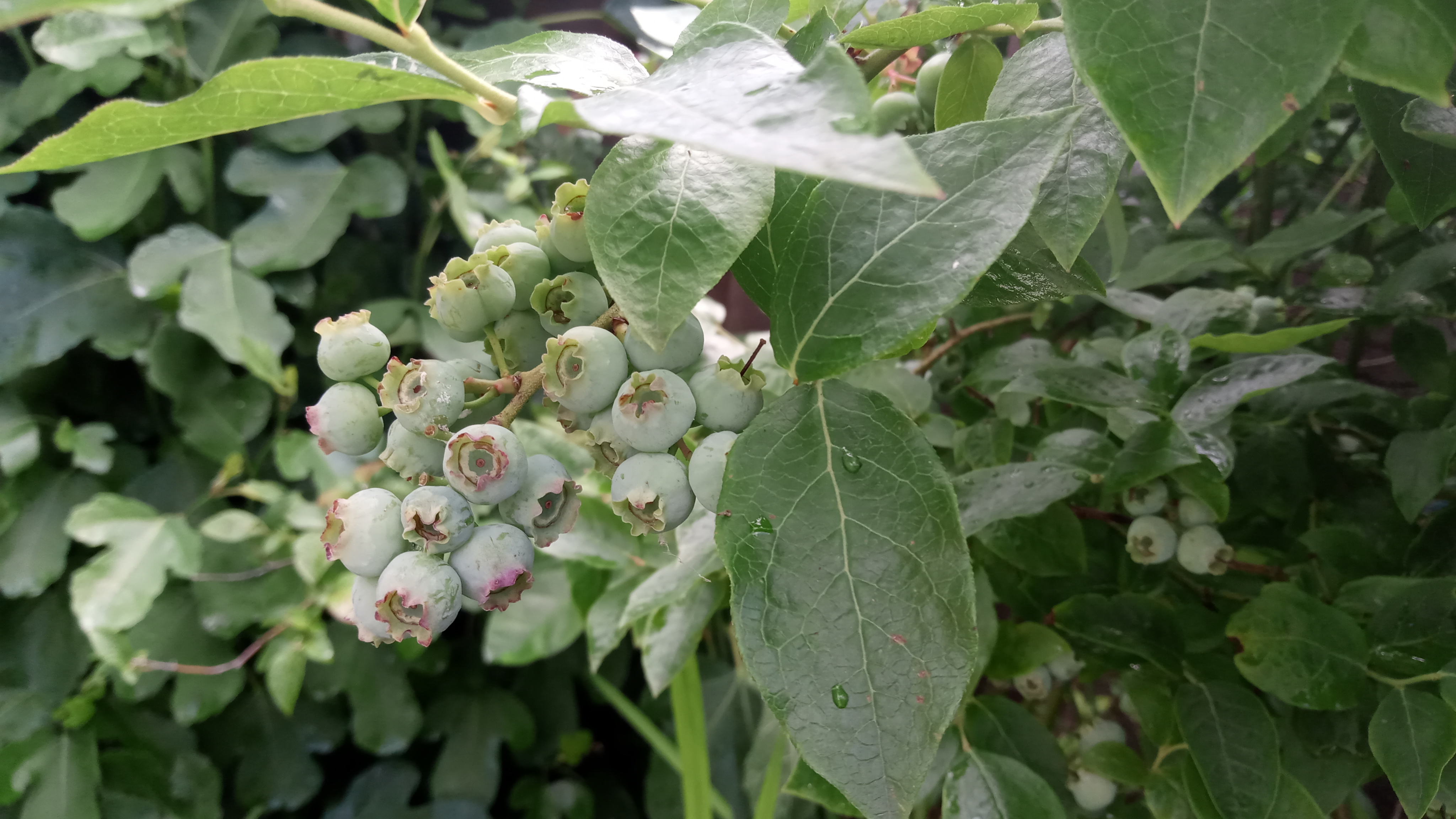 The various fruits are doing nicely. Blueberries are starting to colour up and it’s heartening to watch the local families of blackbirds doing Cirque du Soleil-grade balancing acts to get at them. It does feel good to think of thirsty birds getting a nice juicy treat on the hot days at the moment.