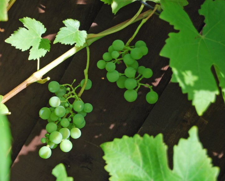 Out in the borders, my grape vine is coming back to life now that it’s no longer crowded about by willow trees (now cut down). It’s very leafy, with only a few clumps of grapes this year but I think it’ll improve more and more each year now it’s got some air around it.