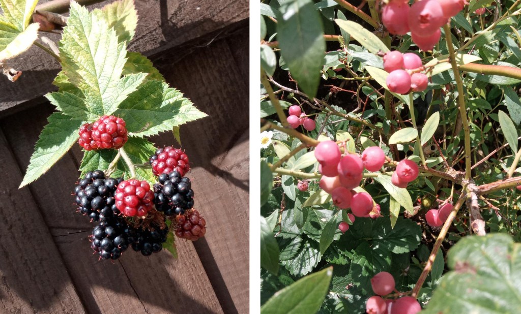 Elsewhere in the garden my Oregon blackberry plant has been putting out fruit for the first time, which is a joy. You have to wait until they turn properly black, but once they do they taste just like Ribena 🙂 Their neighbour, a pink blueberry plant, has been busy fruiting too.