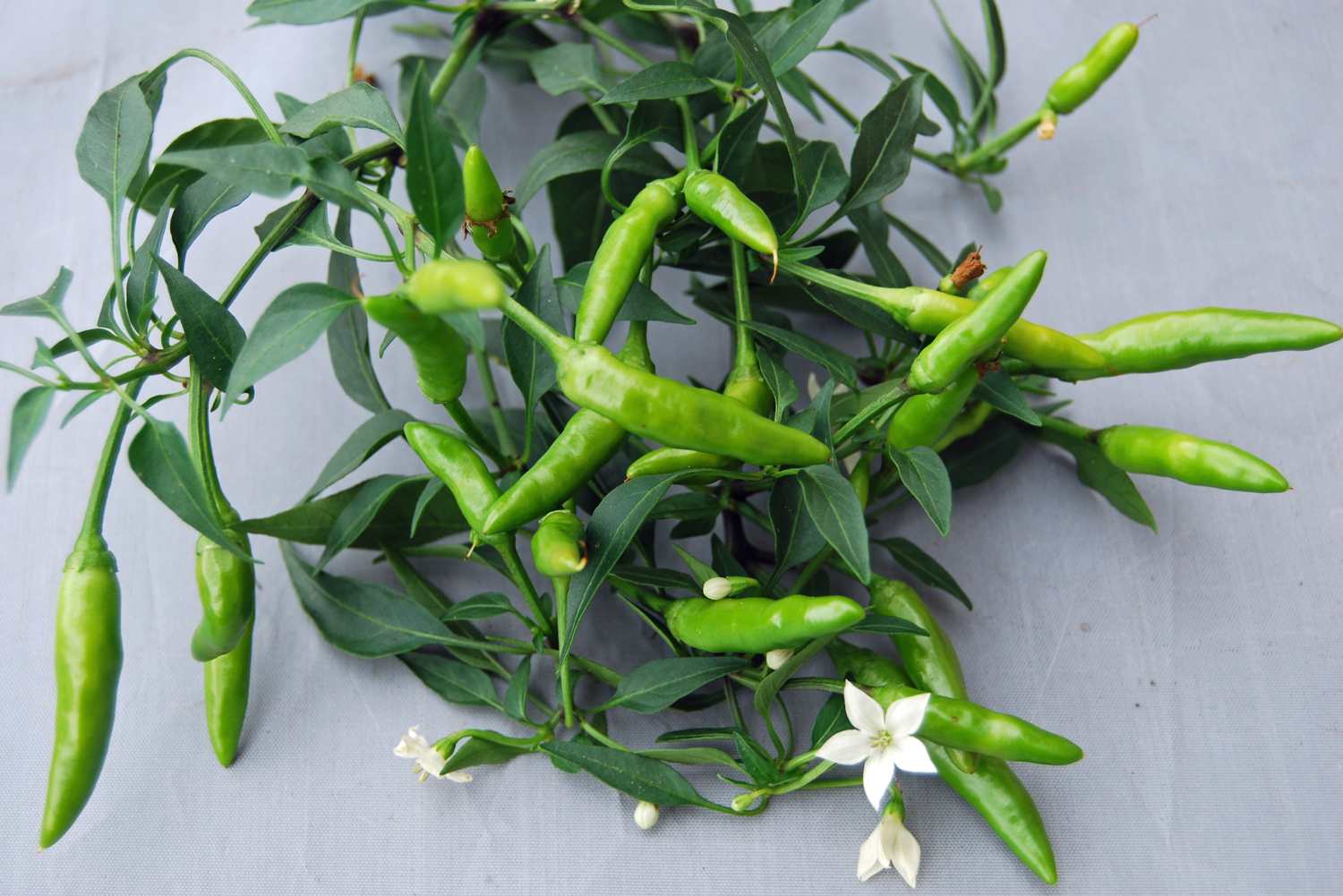 Next to them in the growhouses is an Apache chilli plant. These weigh in at up to 75,000 Scovilles when fully ripe (and red) so are hot stuff. I deliberately picked a few when green today with a view to putting them whole in an oily fried curry: hot but not impossibly so.