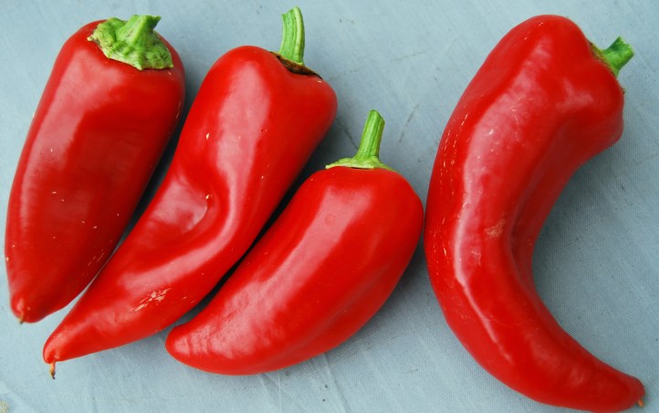 Meanwhile, I also picked some good peppers today. Firstly these big red Padrons, a variety which is often served as a Spanish tapa and always green. But this variety surprised me by being red and I expect will be hotter than the usual green.