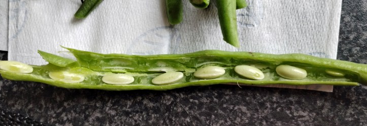 Maturing seeds inside overgrown french beans – delicious to eat raw