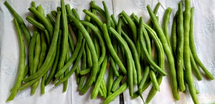 Alongside the carrots in that bed are a couple of dozen dwarf french bean plants, of the variety Castandel. These always do well and I picked a good bunch this weekend.