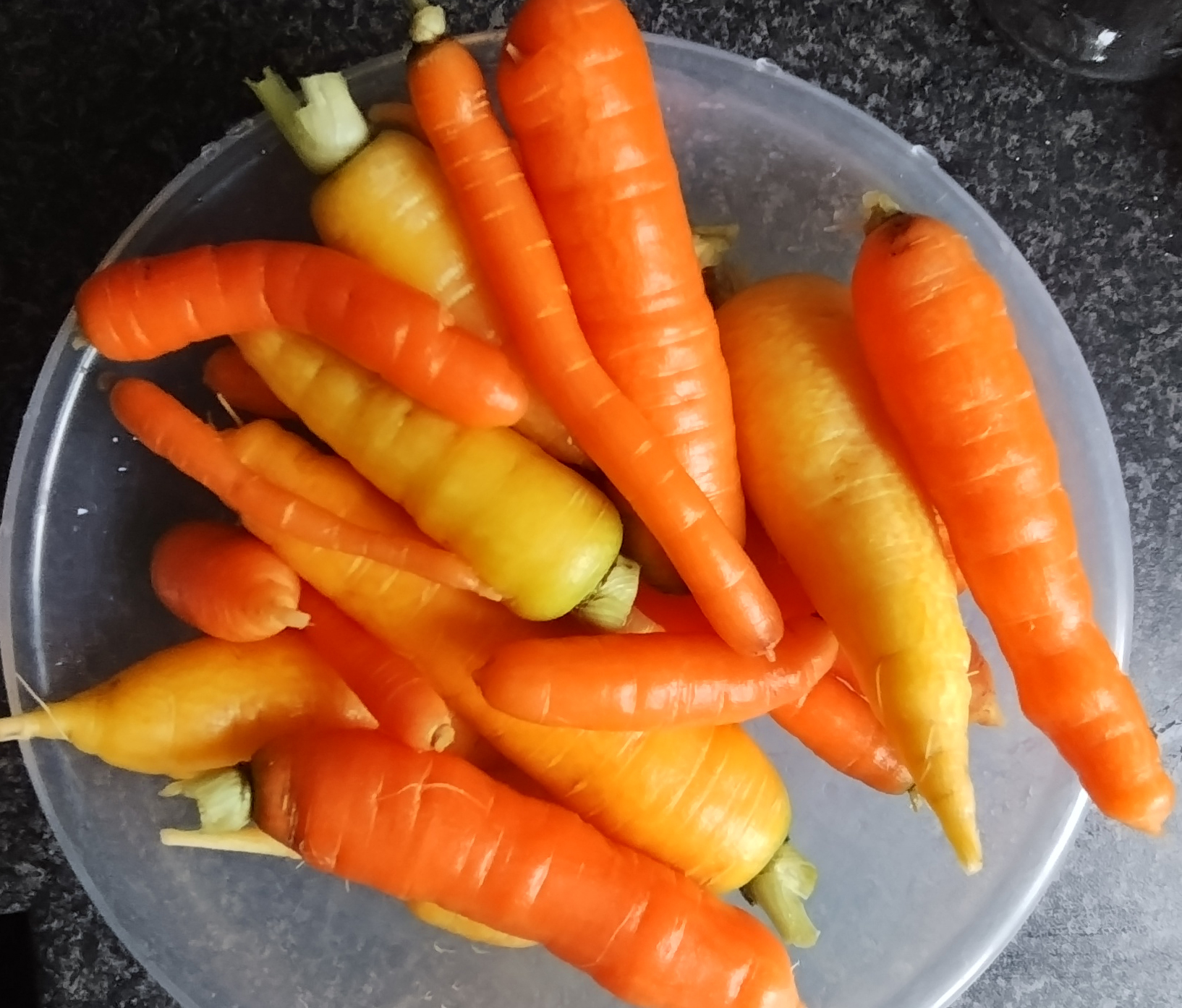 This week it was carrots, beetroot and dwarf French beans up for harvest. Those three were all in one large bed and are a good mix in terms of companion planting.