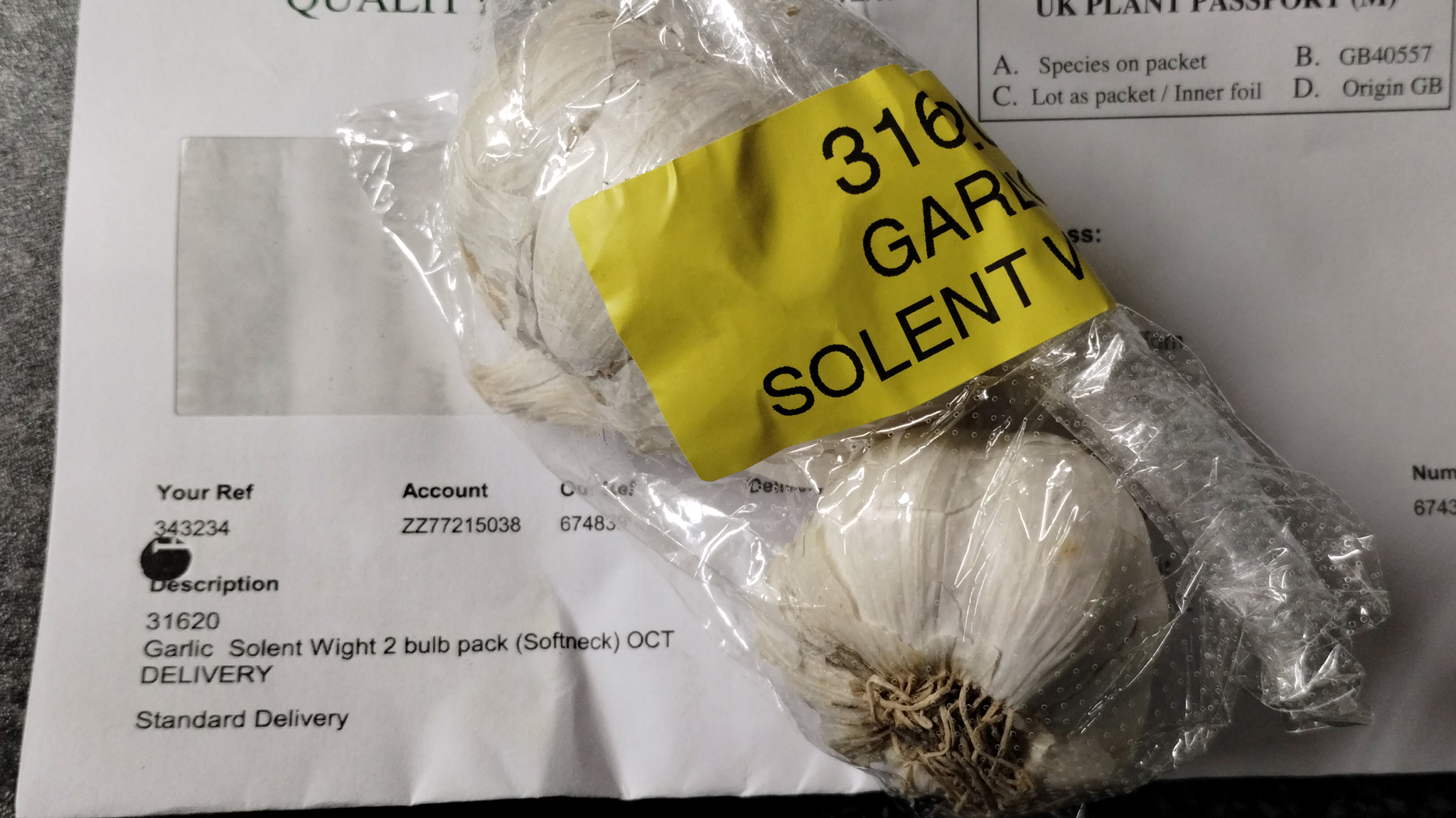 One of the beds will remain open to the air to house next year’s garlic. This time I’m going with reliable softneck variety Solent Wight, mostly because it’s said to keep its flavour well when cooked, which some others definitely don’t. I got two bulbs from Kings Seeds and will break them up and plant out the cloves this coming weekend. They’ll be far happier out in the winter cold than I will!