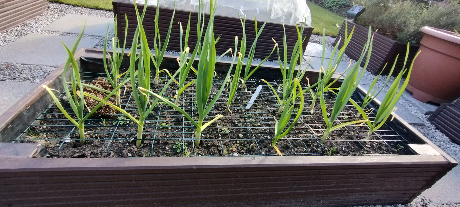 And the garlic is doing well. It’s been in the ground now for about five months and will have benefited from some snowy and icy weather during the winter. The bulbs will be established below the soil line but now that it’s getting warmer they’ll really start to fill out. I’m very much looking forward to harvesting them later in summer.